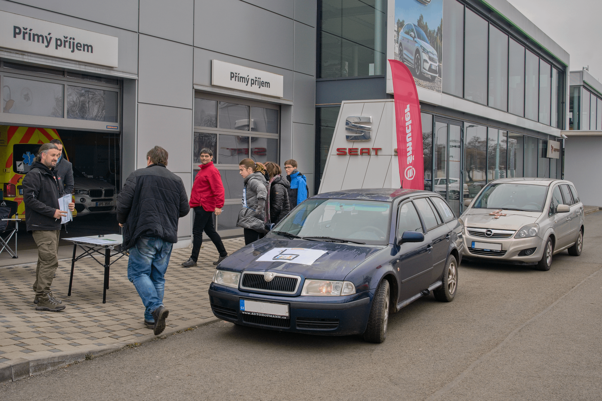 Autocentrum Šmucler bylo jednou z prvních zastávek celé jízdy, která začínala v TJ Sokol Nová Hospoda. Řidiči soutěžního vozu byl dotázán na tlak v pneumatikách a pak mechanici jeho odpověď ověřili přeměřením. Většina soutěžících na otázku neuměla vůbec odpovědět a když už zazněly nějaké tipy, tak byly hodně odlišné od naměřené hodnoty. Děti ve vozidle měly úkol o něco snazší, musely vyjmenovat všechny automobilové značky, které Autocentrum Šmucler v Plzni prodává. Tady byly téměř všechny odpovědi správné a do hodnocení se tak mohly zapsat plusové body.